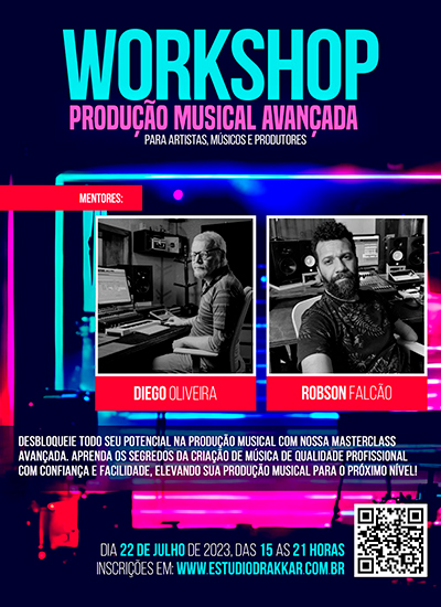 Diego também é educador de áudio e produção no seu canal do YouTube, além de ministrar workshops e produzir cursos online sobre o tema.